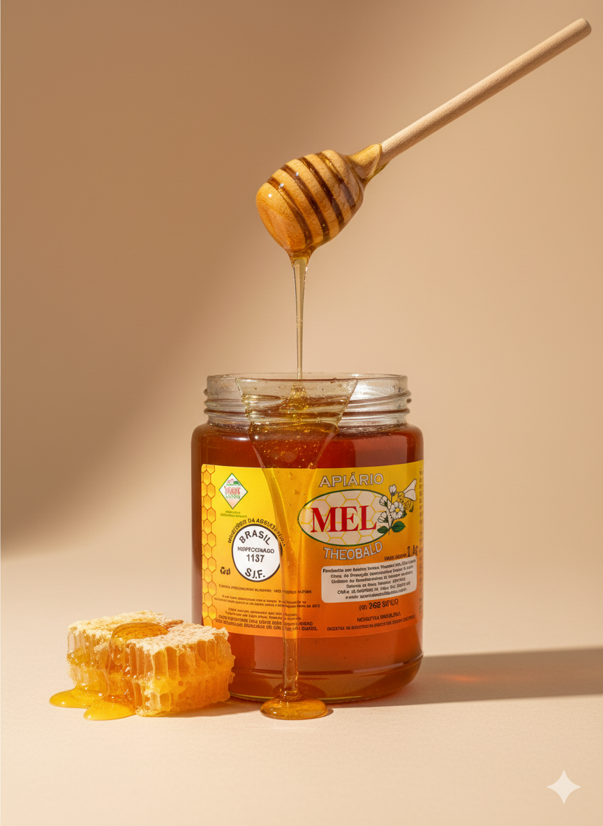 Mel puro produzido artesanalmente pelo Apiário Theobald, resultado de um processo cuidadoso de colheita e processamento que preserva todas as propriedades naturais. Com 1kg de conteúdo, oferece um mel de qualidade superior, rico em nutrientes e com sabor autêntico. Ideal para adoçar bebidas, preparar receitas ou consumir puro, este mel artesanal representa o compromisso com a excelência apícola e a sustentabilidade. Cada pote contém a dedicação de nossos apicultores na produção de um alimento genuinamente natural.